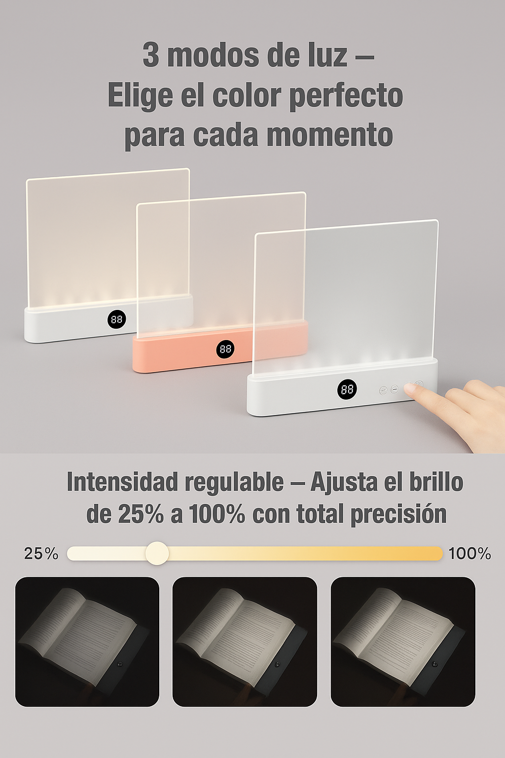Uso 3 en 1 (lectura, mesilla y luz ambiente) |